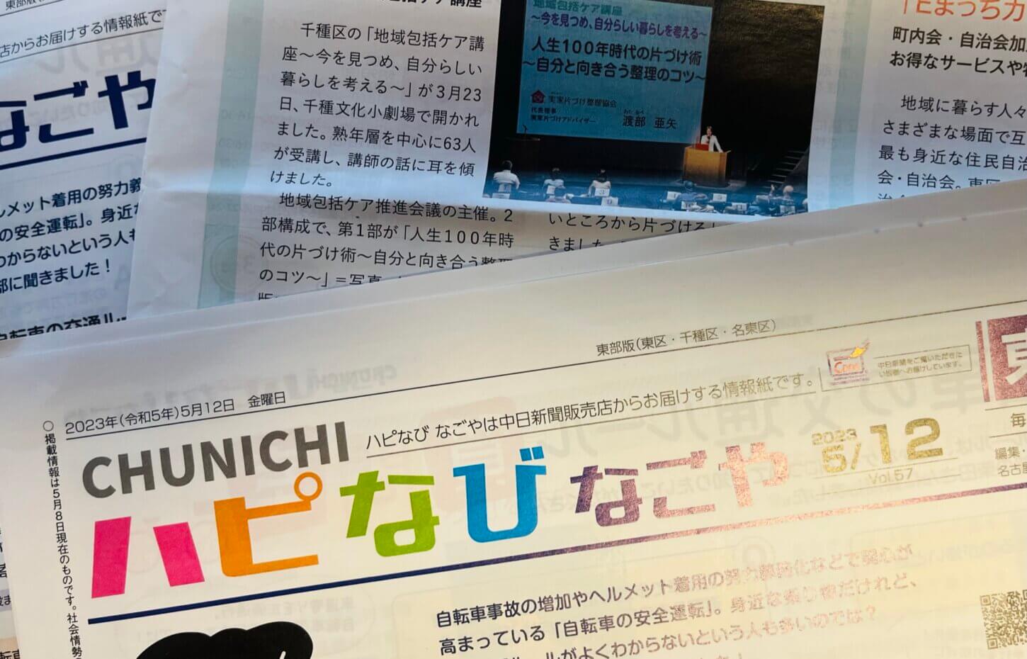 「人生100年時代の片づけ」名古屋地域紙に掲載 ■メディア取材実績 X Facebook 2023.06.12 おかげさまで先日の名古屋市千種区地域包括センターの講演が、名古屋の地域紙に掲載されました。 皆様片付きますように。