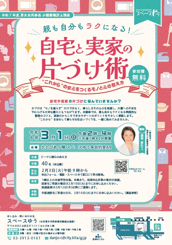 【東京北区】親も自分もラクになる!自宅と実家の片づけ術~“これから”の安心をつくるモノと心の整え方~