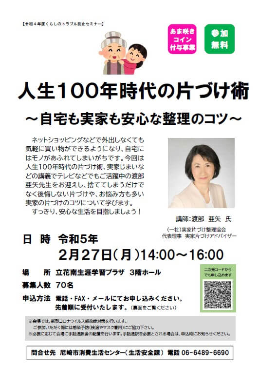 - 11月27日(土)東京都台東区消費者センター 防災につながる自宅の片づけ講座~一石二鳥の整理術~