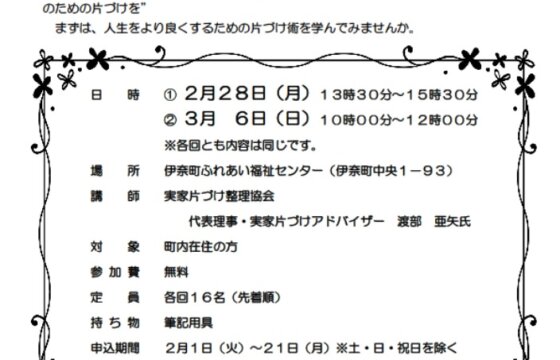 • 12月17日(金)群馬県内 スッキリ! 快適! 家庭の片づけ術~おうち時間を活用しよう~